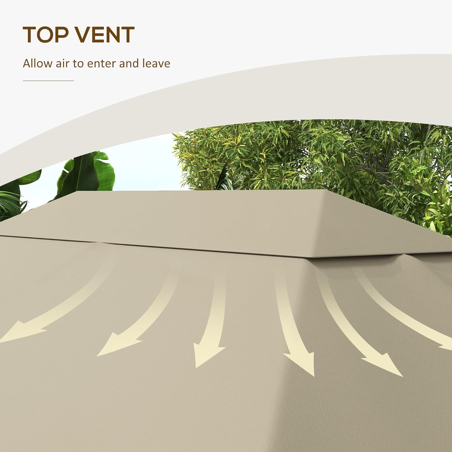 10' x 13' Gazebo Canopy Replacement, Outdoor Gazebo Cover Top Roof Replacement with Vents and Drain Holes, (TOP COVER ONLY), Khaki