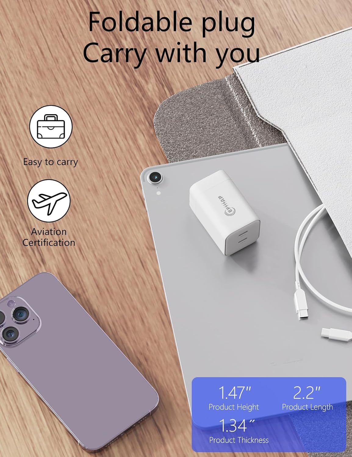 | Additional Features | Dual USB Port, Fast Charging, Foldable Prong, Multi Device Charging |