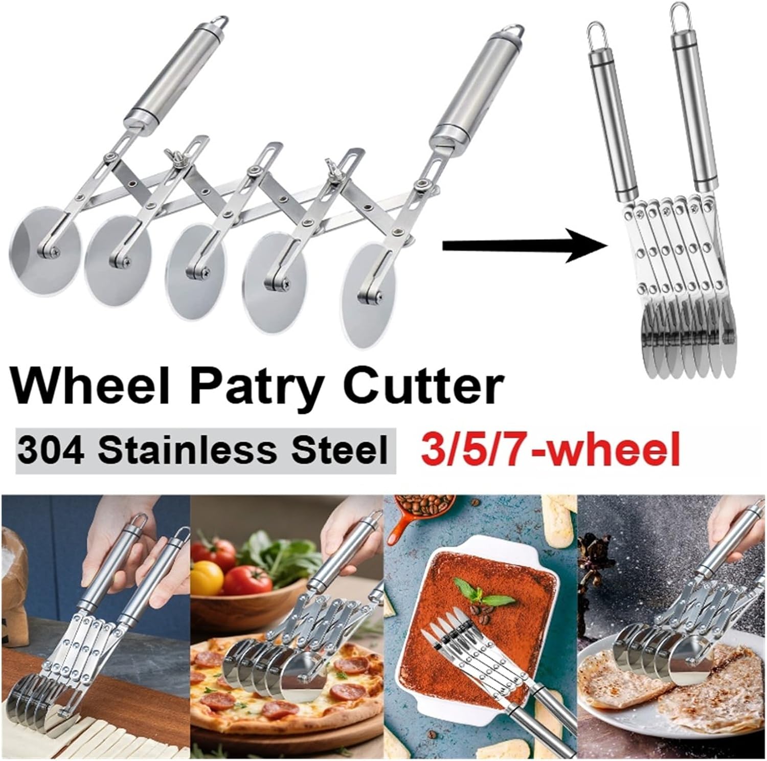 Pizza Cutters3/5/7 Wheel Pastry Cutter Stainless Pizza Slicer Multi-Round Dough Cutter Roller Cookie Pastry Knife Divider with HandleAdjustable Pastry Cutter :The spacing between each wheel can be adjusted according to different cutting widths, allowing for the most diverse cutting optionsdough, pizza, cakeModel Number : Wheel Pastry CutterMaterial : Stainless steelPizza Tools Type : Pizza Cutters & Wheels