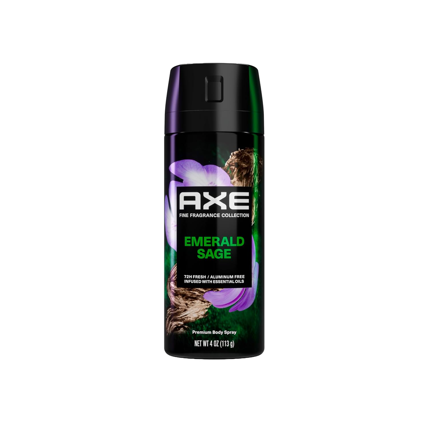 Smell finer than fine fragrances with the G.O.A.T, The NEW AXE Fine Fragrance Collection. 70% of guys in a blind study said they’d replace their fine fragrances with their favorite scent from the AXE Fine Fragrance Collection among Blue Lavender, Aqua Bergamot, and Emerald Sage. Surprised? We’re not. Our world-renowned perfumers have produced a top-tier banger in this Emerald Sage Premium Deodorant body spray for men, with an exhilarating fresh scent infused geranium, cedar, and patchouli essential oils. Everyone deserves a hype man, so we made one in fragrance form. In just a few spritzes of this deodorant spray, you’ll have 72 hours of freshness and unbeatable confidence. With 2X more odor-busting Zinc technology than our standard body spray, we’re out here working smarter, not harder. This body spray is formulated with an aluminum-free formula that hits different, is easy on the skin, tough on odor, and is instantly refreshing. We really thought of everything. Vibing with the Emerald Sage Deodorant Body Spray? Check out AXE Fine Fragrance Collection Emerald Sage Deodorant Stick and AXE Fine Fragrance Collection Emerald Sage Body Wash to stay fresh as ever. That's the AXE effect. IYK, YK. Let’s get it.