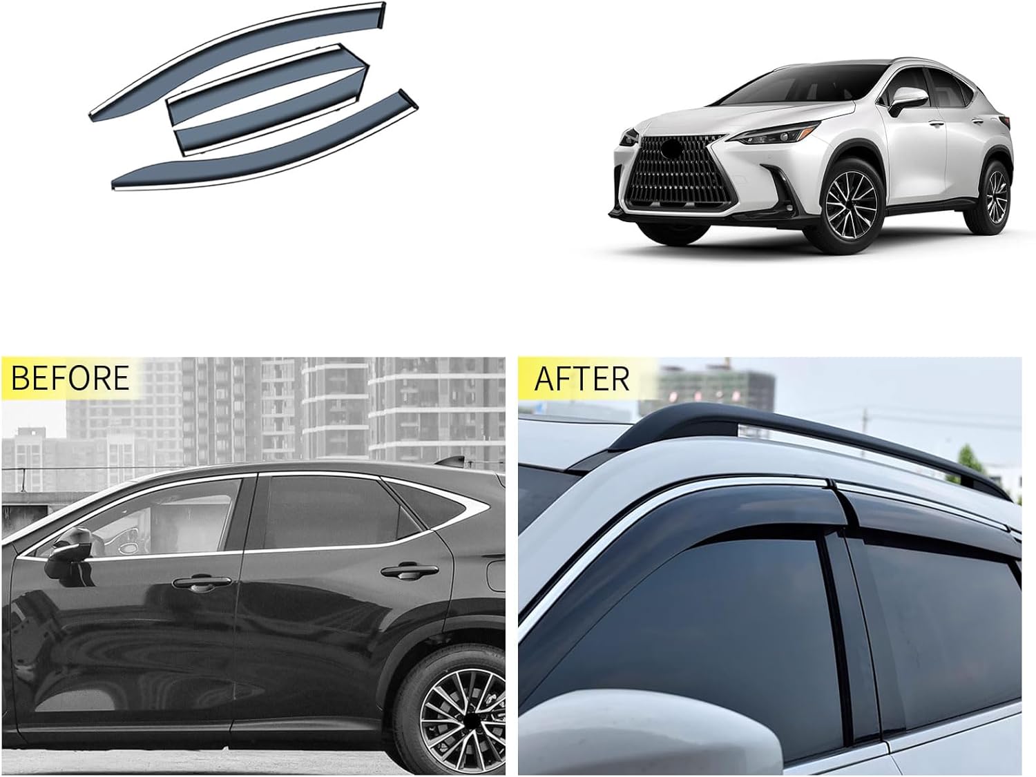 Basic Product Information:Compatible With Lexus New NX 250/350/350h/450h+ 2025 2024 2023 2022 TIP: Please check whether your car model is consistent with the product before buying the product to prevent buying the wrong product.After receiving the product, make sure to determine where the product will be installed, and then compare the product and the installation location. installation method: (1) Use self-adhesive on the back of the item. (2) Clean the surface to be pasted. Keep dry and clean. (3) Please press hard at least 2 minutes after installation, especially the edges. (4)If the weather is cold. Please use a hair dryer (hot air) for the best connection. (5) Do not touch water and keep dry for at least 72 hours after installation. Otherwise it will fall off easily.★Material Type and Product Features: Made of premium PC plastic..It comes with double side tape on the back for you to simply stick on the original panel.They show your charming and highlight your dear car.It will give your car a brand new unique look in minutes!Package includes: include 4 pieces