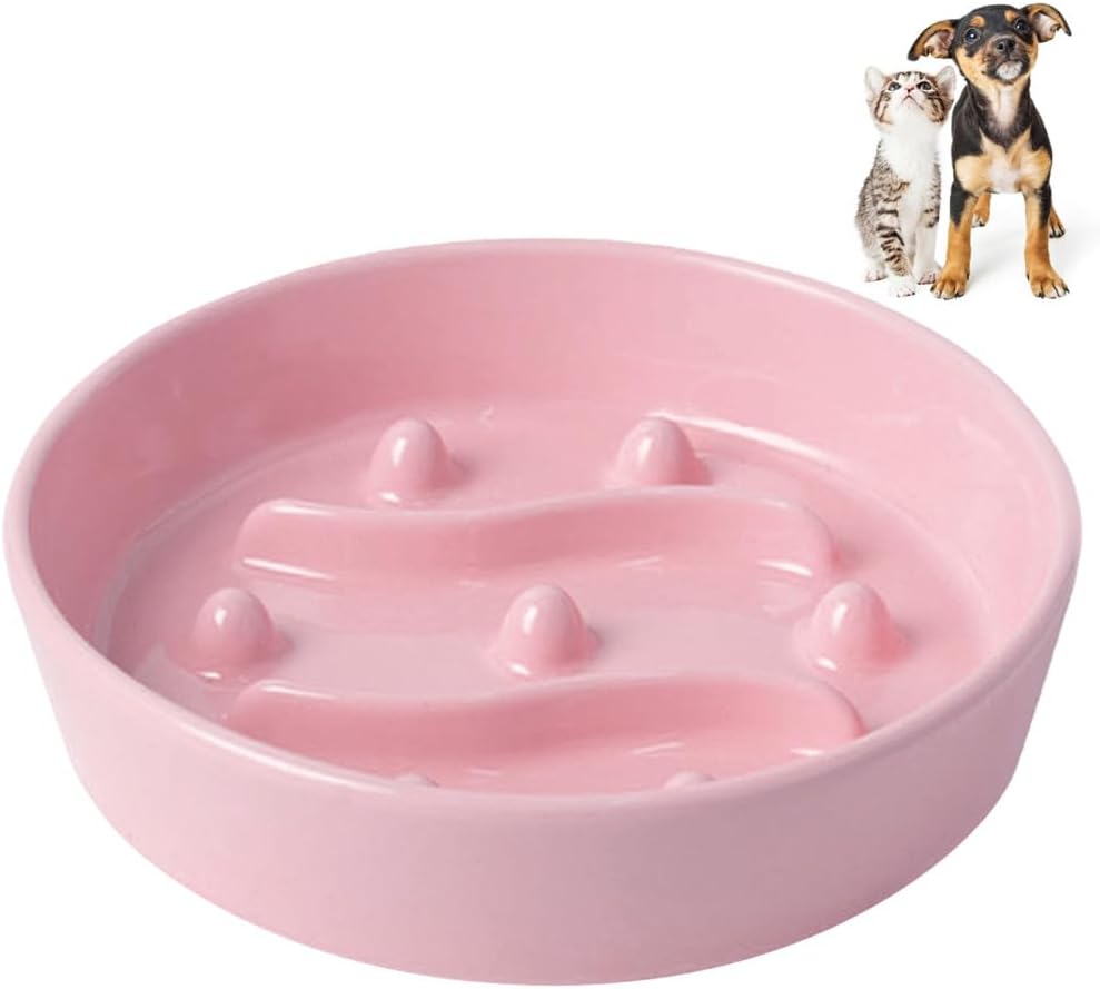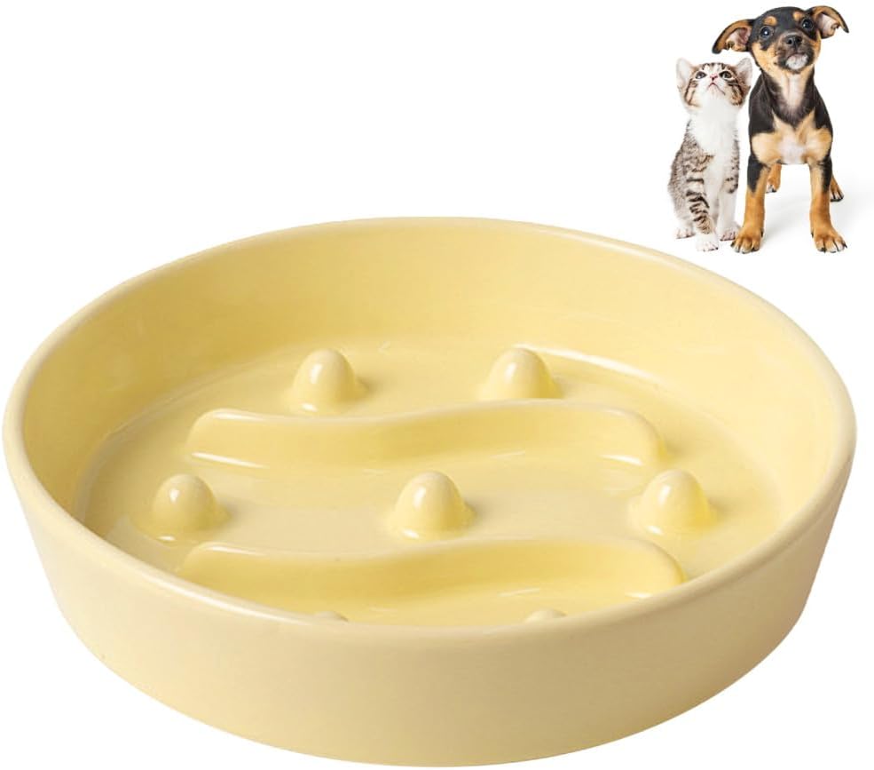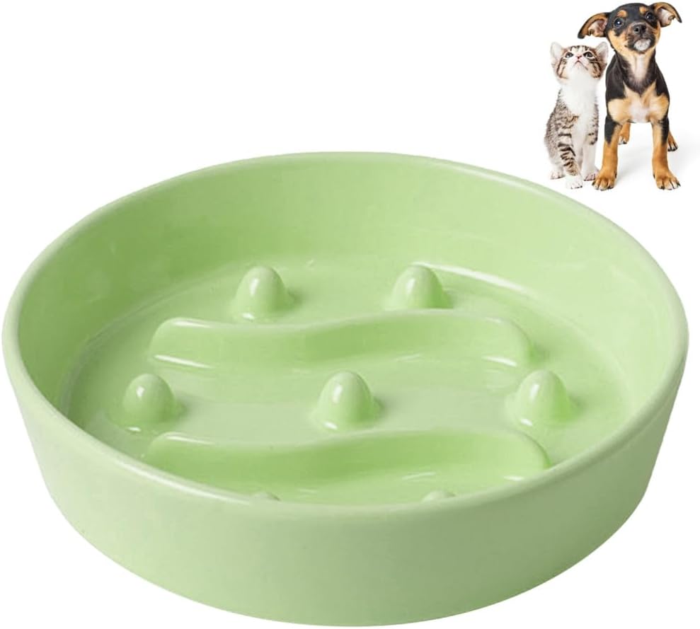 Feature:1.Made from high-quality clay with a dense structure grime,resistant to high temperatures without deformation.2.Anti-Slip Design: The bowl body is weighted, and the bottom of the bowl is equipped with two unglazed rough anti slip rings to prevent the wooden floor, ceramic tiles, and other surfaces from being pushed or knocked over when eating.3.Elegant & Functional Design:The inner wall and edges of the bowl are coated with delicate glaze,two smooth curved baffles and seven three-dimensional protrusions are distributed inside the bowl, disrupting the food concentration area.4.Widely Used: The whole bowl has no joints and can be rinsed with clean water or wiped with a damp cloth. It is suitable for pets such as small and medium-sized dogs and cats.Specification:Colors: Pink, Yellow, GreenMaterial: CeramicSize:Small size: 13.5 * 13.5 * 4cm/5.3 * 5.3 * 1.6inMedium size: 15.5 * 15.5 * 4cm/6.1 * 6.1 * 1.6inWeight: 0.366-0.411kgPacking List:1PC X Cat Slow Feeder BowlNote:1.Please allow 1-2cm measuring deviation due to manual measurement.2.Due to the different monitor and light effect, the actual color of the item might be slight different from the color shown on the pictures. Please Understand. Thanks!