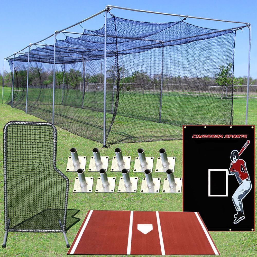 | Included Components | 1 (one) - #45 Commercial Batting Cage Net, 1 (one) - 4'Wx7'H #84 Commercial L-Net and Frame, 1 (one) - 5'Wx7'H Heavy Vinyl Backstop, 1 (one) - 6'Wx12'L Pro Home Plate Mat, 1 (one) - Complete Commercial Steel Batting Cage Frame with Ground Supports |