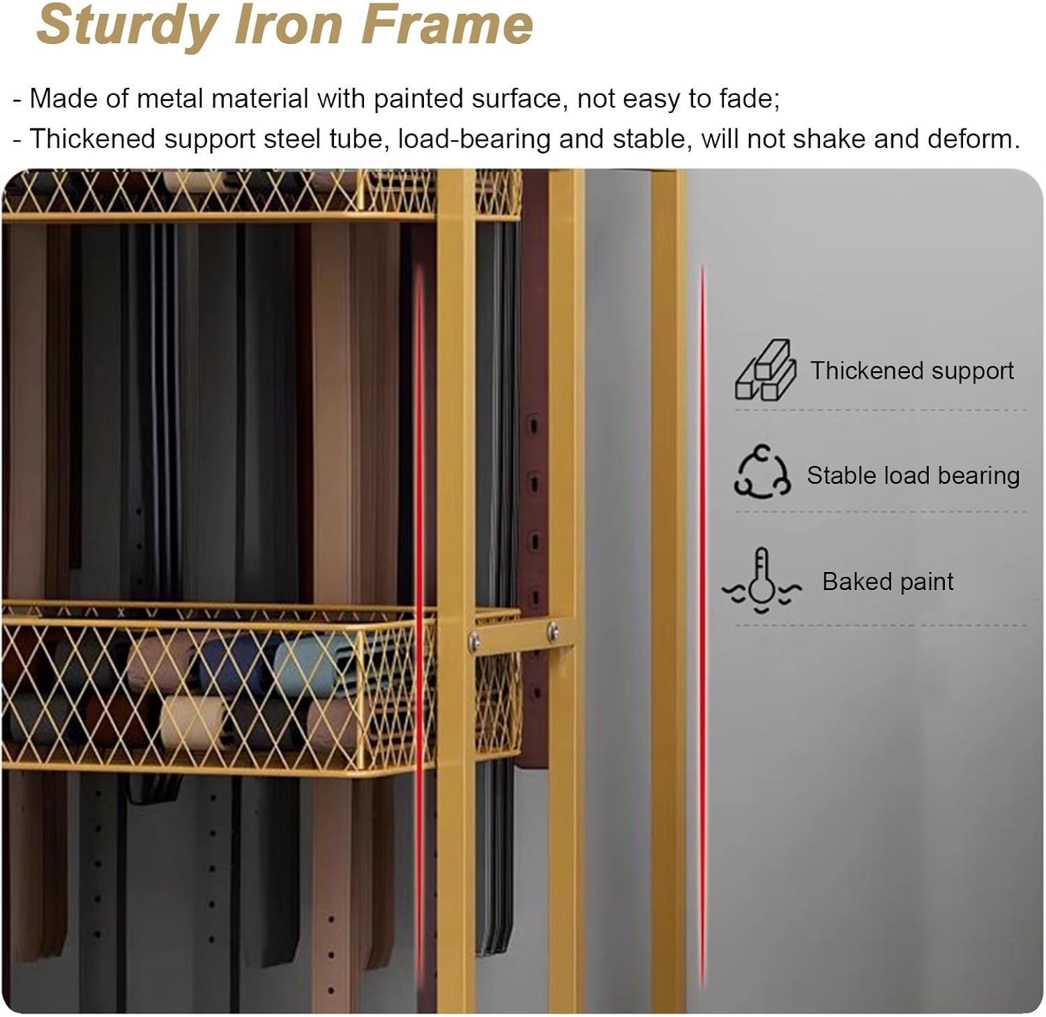 This display stand can be widely applied in indoor places, home, office, Retail stores, specialty stores, trade shows, clothing stores, ornament stores and so on Product Name: Belt Stand Material: Iron Color: black, white, gold Height: 150cm /59in Deep: 45cm/17.7in Width: 60cm/23.6in, 80cm/31.5in Whether to assemble: yes Furniture structure: bracket structure Product Features: 1. Easy to clean: Smooth surface, just use a cloth for a simple wipe 2. Easy to move: 360°swivel wheels, you can move it to any place. 3. Raised End Design: The tail of the hook protrudes upwards to prevent items from falling off 4. Application: home, office, retail stores, specialty stores, trade shows, clothing stores, jewelry stores 5. Floor-standing belt racks no longer take up much space and can make a big difference even in tight areas 6. 3-layer design, convenient storage, all-round display, upper and lower stepped design, neat and orderly, fully display the buckle head and belt body of the belt. Package Includes: Belt Holder x 1 Description: Product size pure manual measurement, the error in 1-2cm, the specific subject to prevail. It's can't avoidable that you will receive the backpack with some smells from original material as it'snew. The smell will be gone if place the backpack in freely circulating air for 2-5 days.