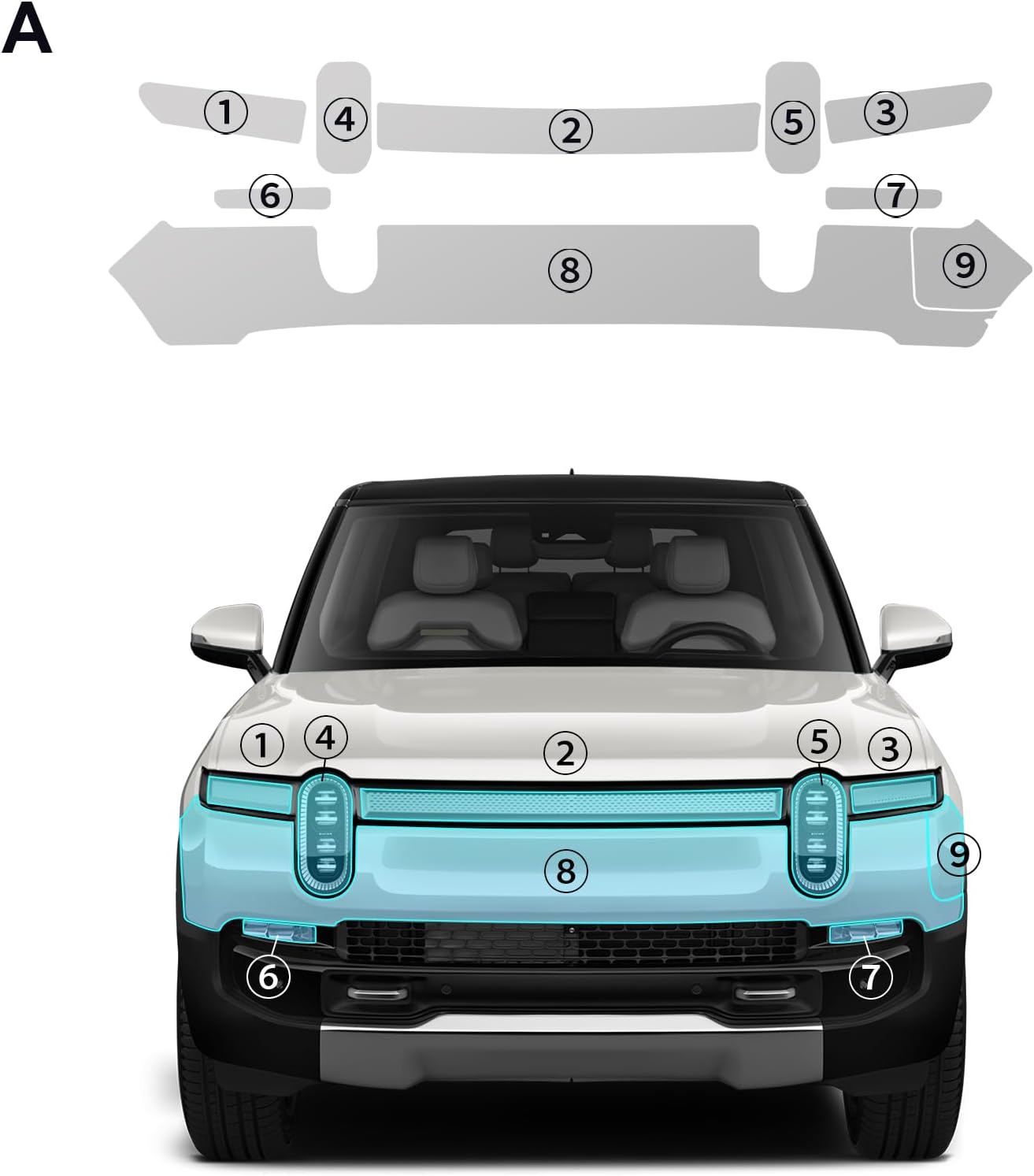 | Size | Front Bars + Headlights 9Pcs |