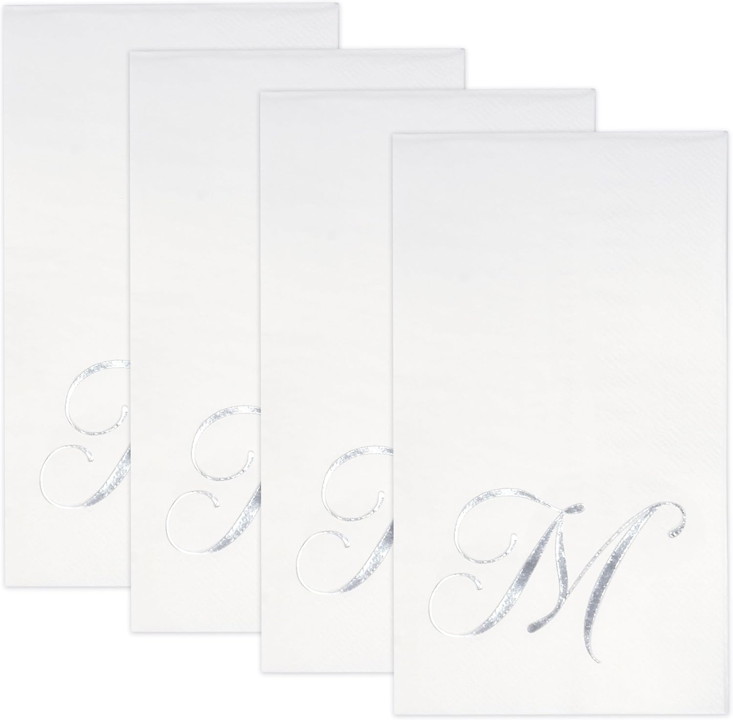 Monogrammed Guest Napkins Serves 100: Gift Boutique rectangular monogram guest napkins features the letter M printed in silver foil on white. These napkins will definitely enhance your table and impress your guests. These are essential for providing guests high-end comfort and luxury. Measures: 7.5" x 4.25" folded and 15" x 12.75" unfolded. For Gatherings & Special Events: Perfect for 50th anniversaries, birthday parties, tea gatherings, and wine tasting. Flawless napkins for wedding reception, engagement and graduation parties, Christmas dinner, New Years Eve, fancy restaurants, holidays, bridal shower, baby shower, hearty lunch and more! Treat your guests with all the attention they truly deserve! High Quality: Napkins are made of high quality thick paper. Napkins are soft and absorbent & dry your hands quickly. These personalized napkins will be great for any party. The metallic silver M initial party napkins really adds dimension to your parties as your guests will love the pretty design. Enough For Your Guests: Stock up with these silver foil and white napkins so you can be assured that you will have enough for all your guests who will attend your party. Serve dinner to guests in catering, buffet, potluck, events or daily meals. More Time To Enjoy: Disposable paper reduces clean-up time so you can enjoy more time with friends and family. Perfect for your own house or as a gift for a friend. Ideal for dinner table placement, office, party decor, powder room, bathroom vanity, kitchen counter top and guest bathrooms.