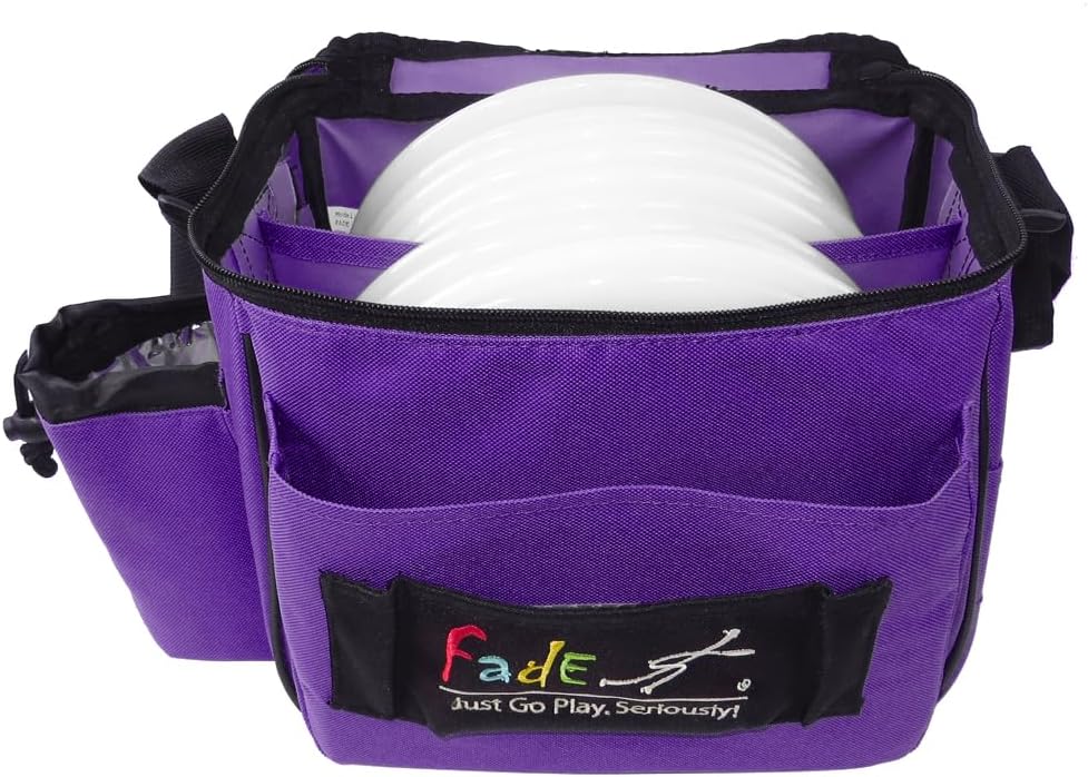 The FADE Crunch Box is a fine-looking, durable, 10-12 disc bag for everyday play in a bunch of colors. Just owning one will let you tell people you ACE at least one hole every game. You can search, but you won't find another bag with a feature list like this one at this price. We have a crew of Howler Monkeys that test our bags harder than you'll ever use it. We've thrown it at trees, down hills, run over it with cars, slammed it in the baskets, and drug it through mud. Notice the side pockets.We raised them up, away from the bag bottom so they don't drag on the ground and wear around the edges like other bags. Plus, we added some of those tiny little feet that really work well on a bag this size. They keep the bag upright (most of the time) because its no fun when your bag falls over. You can easily carry 12 discs in the Crunch Box bag, a jacket, a liter of water, your wallet, car keys and one small Howler Monkey. The padded shoulder strap will keep it comfortable. Oh, and did we mention the empty bag only weighs just under 20 ounces!? All Fade Gear bags include a 1 Year, no fault warranty.