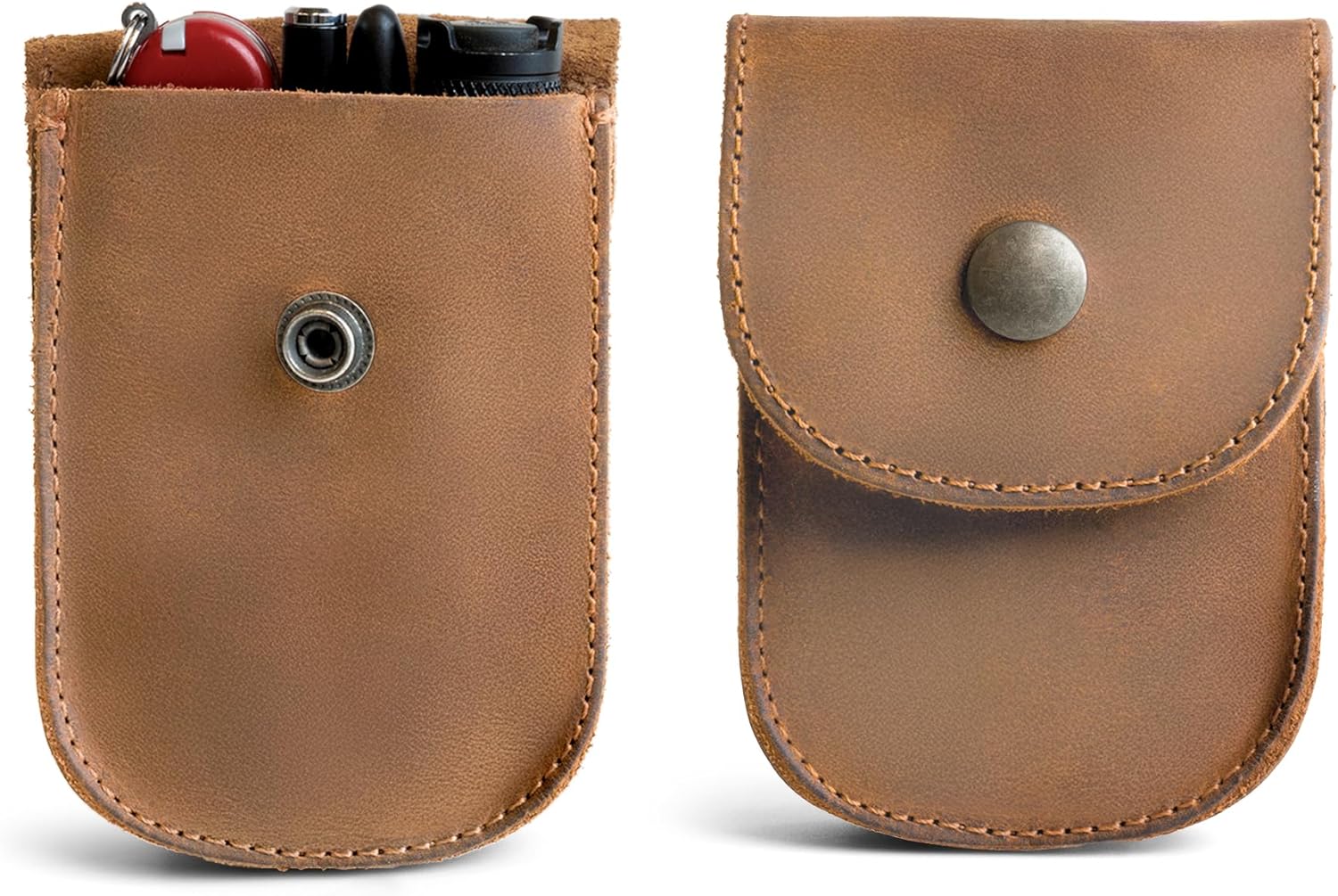 BELT HOLSTER POUCH: This Holster Pouch is handmade from durable, full grain leather and conveniently attaches to your belt. Measuring at just 3” by 4.25”, this pouch won’t add bulk or weight on your body. Easily carry small personal items such as coins, change, cards, and headphones wherever you go. This Holster Pouch is also great for storing nails, screws, and other small hardware while working on construction projects. This small pouch makes a great gift and will last for many years. HIDE & DRINK’S 101 YEAR WARRANTY: Each one of Hide & Drink’s rustic, durable leather products is made with care and craftsmanship, with every item handmade to the highest standard. Our confidence in our products knows no bounds, so we include each product that you purchase with a 101 Year Warranty. We aim for nothing but 100% satisfaction when it comes to our products, so if you’re not satisfied, just get in touch with us and we’ll help you as quickly as possible. HANDMADE FROM SOFT & ATTRACTIVE FULL GRAIN LEATHER: All of Hide & Drink’s products are hand cut and handcrafted using the highest quality of leather that you will find, namely Full Grain Leather. The quality of this leather ensures a long-lasting life and durability. After time and use, the leather will attain a beautiful and unique patina that will show age and grace. FINELY HAND STITCHED: We are proud that each and every one of our products is handmade by expert local artisans of Pastores, Guatemala, a town wholly dedicated to the crafting of leather goods. Each item is hand cut and finished with a fine stitching method than not only looks good, but also makes for a durable finish that will give you a lifetime of use. Any loose ends are passed over with an open flame to ensure no unravelling during its lifetime. MAKES A GREAT GIFT: Hide & Drink swears by its leather, and knows that this fine, rustic Full Grain Leather product will make an excellent gift for friends, family and loved ones. Built to last a lifetime, this item will make a thoughtful, long-lasting gift for anyone and everyone. SPECIFICATIONS Dimensions Length: 4.25 in. Width: 3 in. Height: 0.88 in. Materials Full Grain Leather USE & CARE Over time and with use, the leather will assume a unique patina. If desired, condition with mineral oil or beeswax leather conditioner.