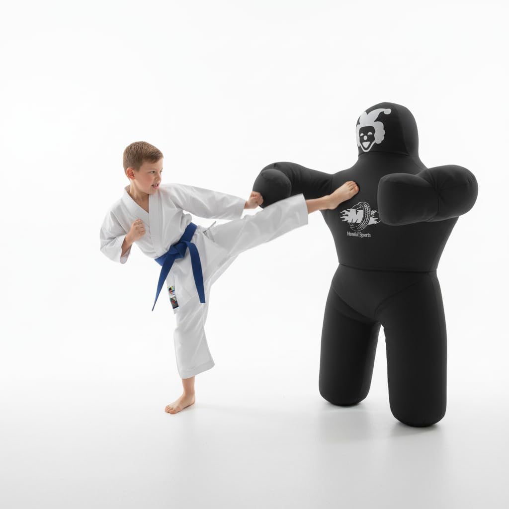 Give your child a dedicated training partner that builds real skills — not just activity. The Minahil Kids Grappling Training Dummy is designed specifically for young martial artists learning MMA, Brazilian Jiu-Jitsu, Wrestling, Karate, and other combat disciplines. Unlike adult-sized dummies, this youth-proportioned design allows proper body positioning and safer technique development. Children can practice takedowns, control drills, transitions, and basic ground techniques independently. This builds muscle memory, coordination, and confidence without depending on a training partner. Constructed with durable canvas fabric and reinforced stitching, the dummy maintains its shape through repeated use. The bold masked design and vibrant color options (Blue, Red, Yellow, Gray) add excitement and visual appeal to training sessions. Whether used at home, in martial arts academies, or in youth training programs, this dummy helps young athletes improve technique in a structured and controlled way. Package Includes: 1 Kids Grappling Training Dummy Instruction Manual