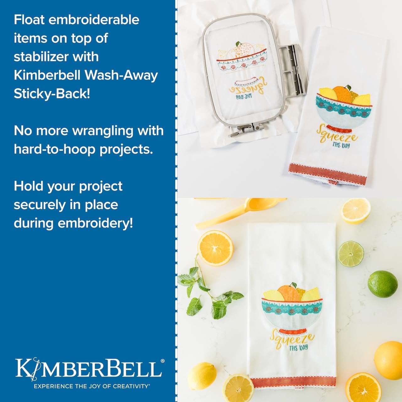 Wash Away Stabilizer for Embroidery - Kimberbell Wash-Away Sticky-Back Stabilizer, Sticky Stabilizer for Embroidery, Self Adhesive Water Soluble Paper for Sewing, Quilting, and Crafting (20” x 5 Yd) Introducing the Kimberbell Wash-Away Sticky-Back Stabilizer, a revolutionary tool designed to elevate your embroidery projects to new heights. Crafted with precision and innovation, this stick and wash away embroidery stabilizer offers a range of benefits that cater to the intricate demands of embroidery enthusiasts. Our dissolving embroidery paper serves as an indispensable companion for an array of embroidery endeavors, from over-the-edge appliqué to low stitch count designs and hard-to-hoop projects. Ready to enhance your craftsmanship across a diverse spectrum of tasks, this stabilizer will become a necessary addition to your embroidery stabilizers wash away. Whether your canvas is delicate organza or stretchy swimsuit material, our embroidery wash away paper proves its mettle on a variety of fabrics. It is uniquely designed to handle sheer, lightweight fabrics, ensuring they remain unmarred by any residue. With this sticky stabilizer, you can say goodbye to basting. This self adhesive stabilizer sticks securely to your fabric, saving you time and effort. It also lets you reposition your fabric for precise embroidery placement, giving you more control over your work. Made from water soluble fabric, this wash away stabilizer for embroidery machine disappears completely when it comes into contact with water. No residue, no fuss. Just hoop the water soluble embroidery paper with the glossy side up, score around the hoop, remove the paper, stitch your design, trim any excess stabilizer, and dissolve the rest in water. The Kimberbell Wash-Away Sticky-Back Stabilizer is a practical game-changer for embroidery and crafting. Its self-adhesive convenience, sticky stabilizer for machine embroidery design, and compatibility with different fabrics make it an essential tool for every creative project.