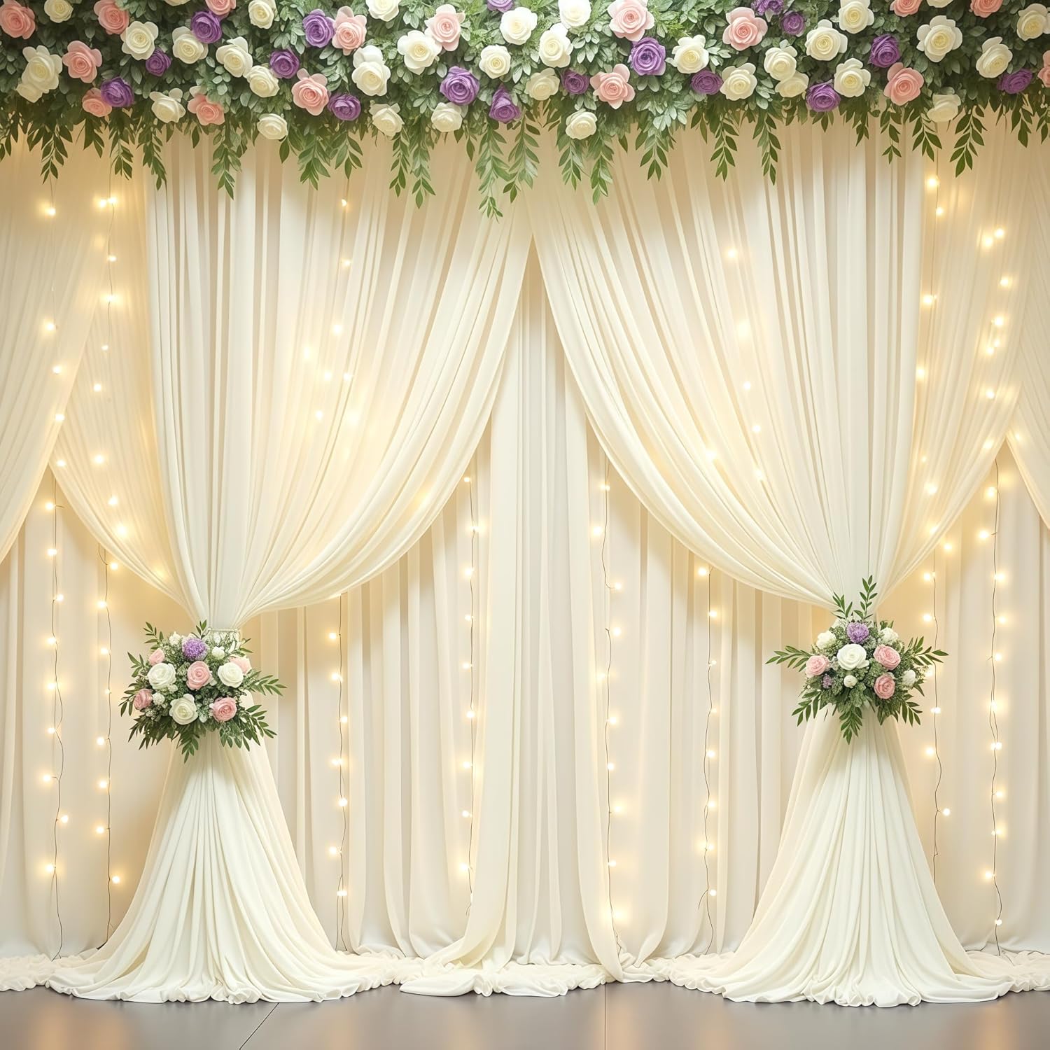 | BuiltIn Media | 10ft christmas backdrop, champagne backdrop curtain, champagne curtains with lights, party curtains drapes, wedding backdrop curtain |