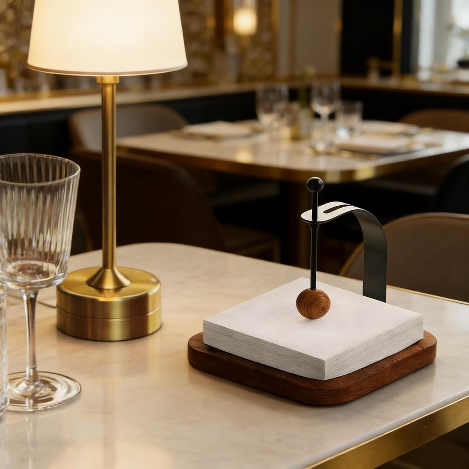Elevate your everyday dining and kitchen experience with this exquisitely designed wooden paper towel holder. Crafted from premium solid wood and sleek matte black metal, it combines minimalist aesthetics with functional practicality. The weighted wooden ball arm keeps napkins securely in place, preventing them from flying away and ensuring one-handed, tear-off convenience. Its low-profile, elegant design seamlessly blends into any modern, Scandinavian, or rustic interior, making it a sophisticated addition to your dining table, kitchen counter, or coffee bar. More than just a functional tool, it doubles as a tasteful piece of table art that enhances your home decor while keeping napkins within easy reach for you and your guests.