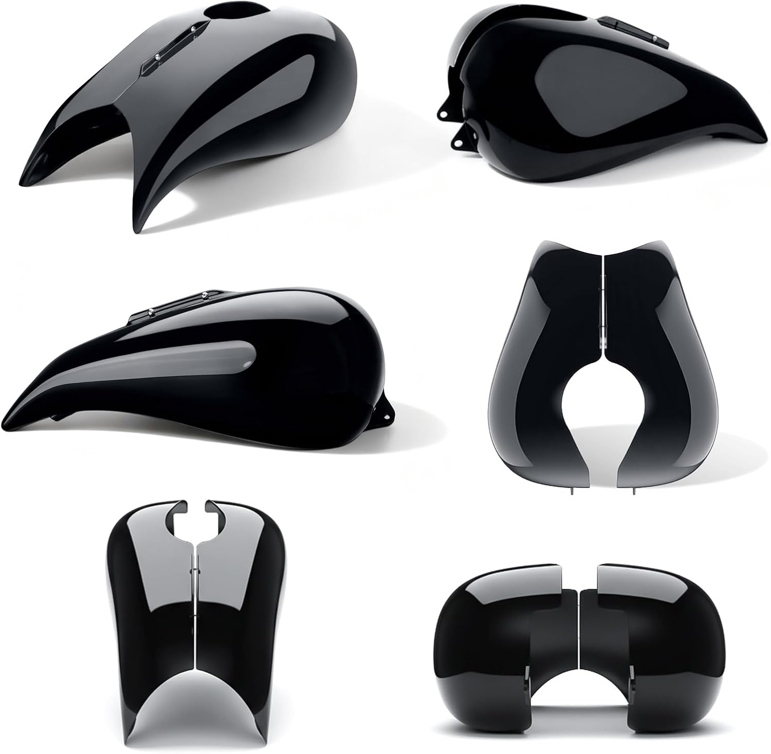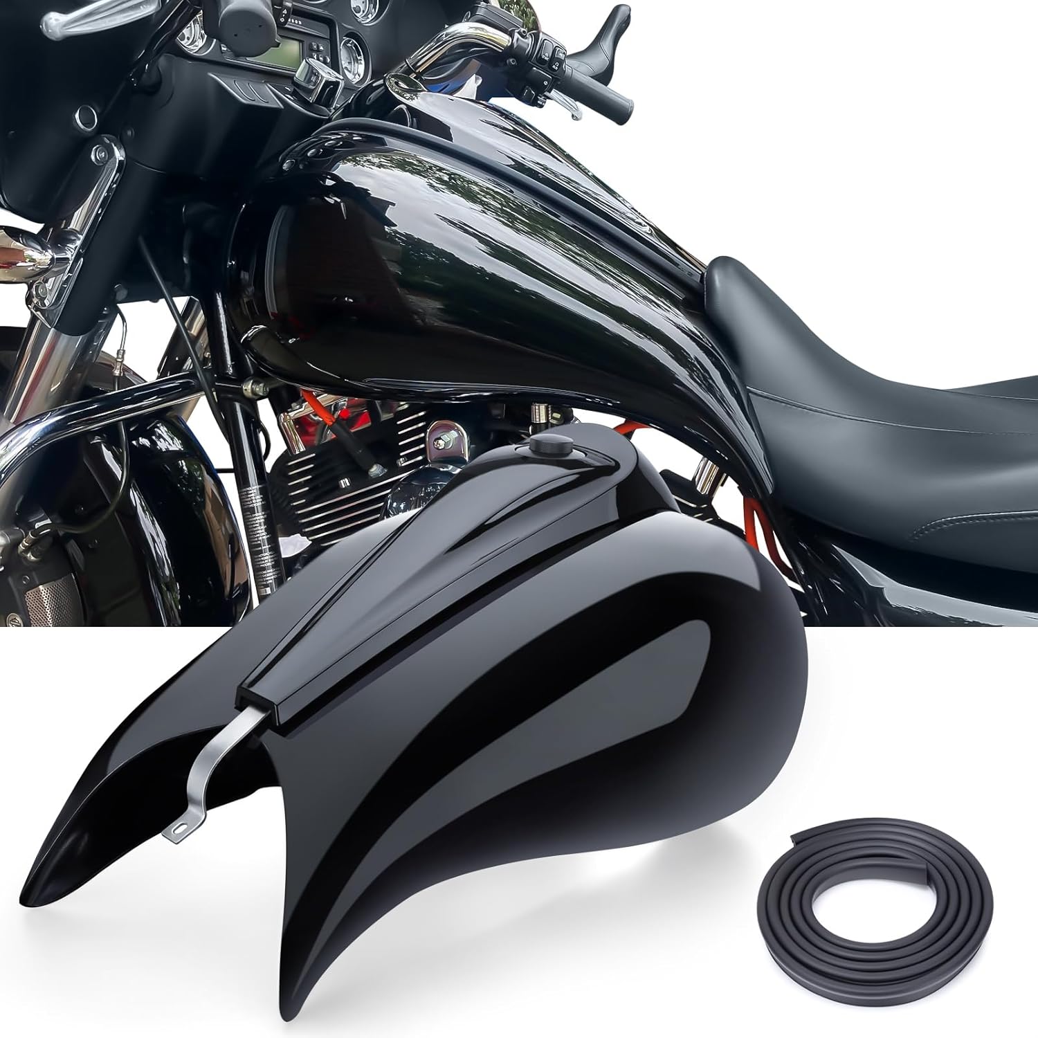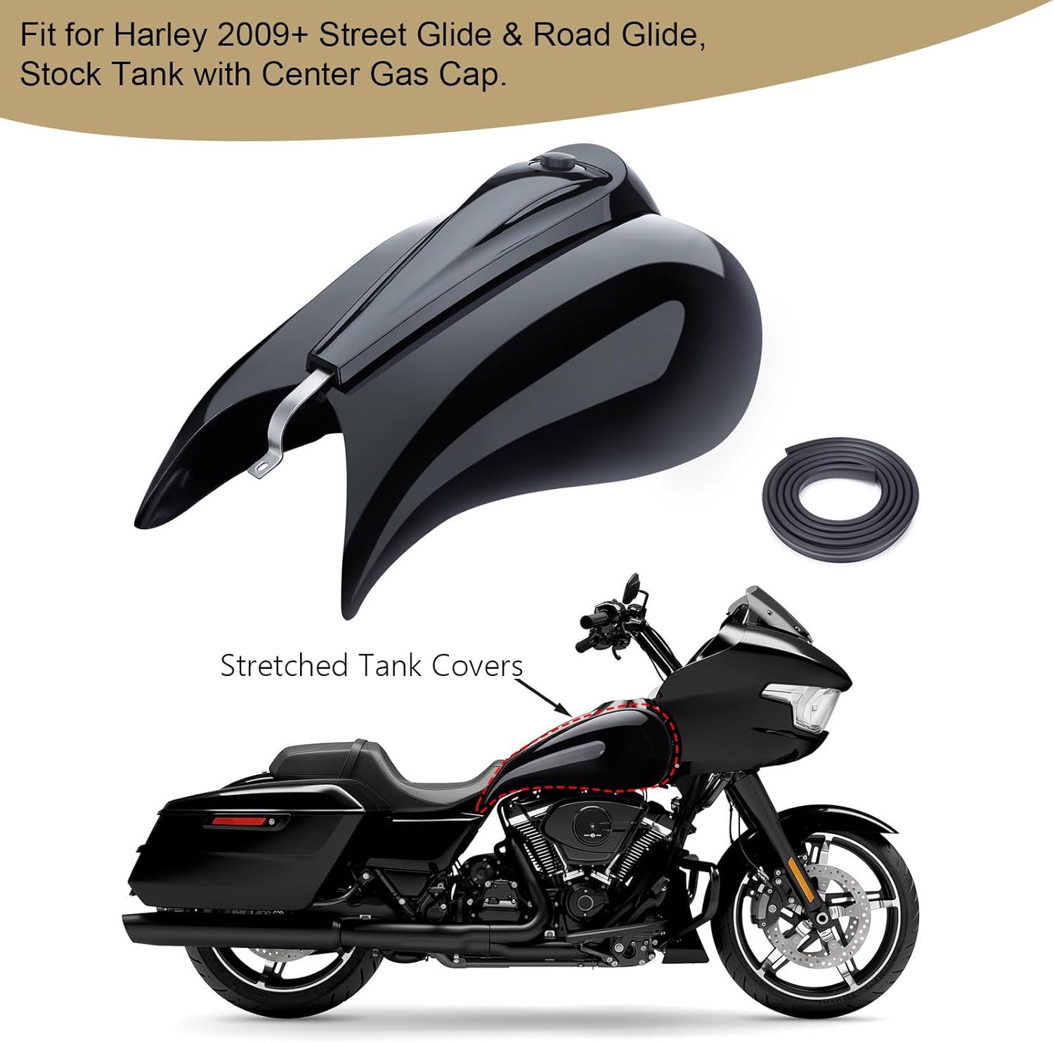 Designed to transform your touring bike's profile without permanent modifications, this complete kit delivers that sought-after stretched bagger aesthetic using your existing factory tank.Complete Fitment Guide:Compatible with Harley Touringfor Street Glide (2009-Up) – Center fill onlyfor Road Glide (2009-Up) – Center fill onlyDOES NOT FIT:ONLY fit "Stock Seat & CVO Seat" and will not fit any custom or slim seatWon't work with ultra limited tank dashes with cb port.Won't fit if the cap is on the side tank.Won't work with CVO models with gas caps on the side of the tank dash.Won't fit 2021 SGS/ RGS/ CVO with gas cap on the right side of tank.Package Includes:1 x Left Right Stretched Tank Covers1 x Tank Dash Console Cover1 x Fuel Gas Cap Specifications:Material: High-Quality ABS PlasticFitment: Direct bolt-on over stock tankInstallation: No drilling, no glue, no modificationsTransform your bike's profile today. Give your motorcycle the aggressive stretched look it deserves—without the custom shop wait or expense.