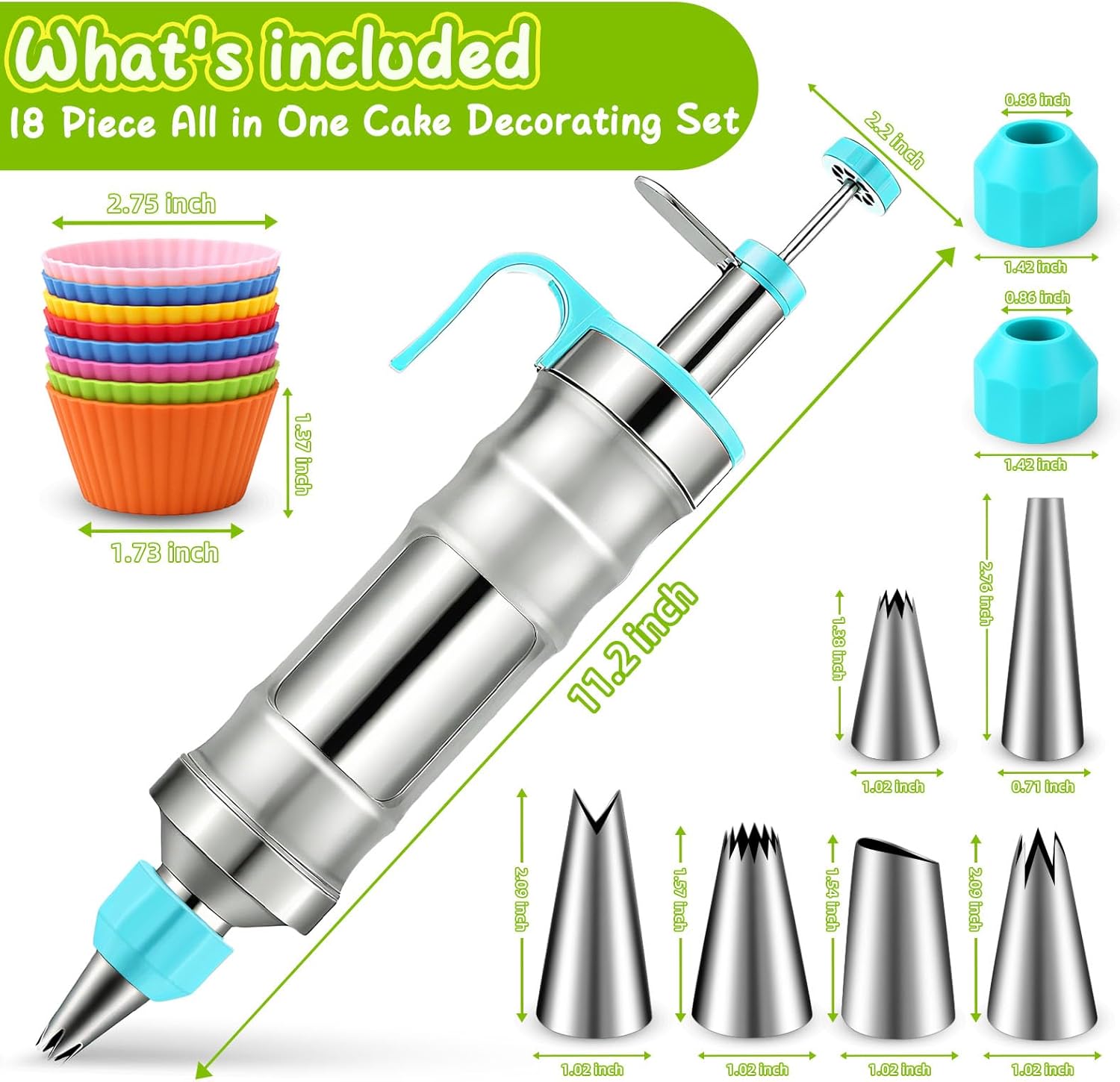 | Included Components | 2 piping tip couplers, 6 replaceable piping tips, 9 silicone cupcakes |