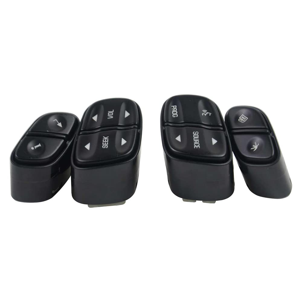 Specification:Product Name: Steering Wheel Switch Control ButtonsProduct Material: ABS PlasticProduct Color: BlackOE Numbers: 21997738, 21997739, 1999442, 1999443Fits the Following Vehicles:For Chevy Avalanche 2003-2006 For Chevy Silverado 2003-2007 For Chevy Suburban 2003-2006 For Chevy Tahoe 2003-2006 For Chevy Trailblazer 2004-2009 For GMC Envoy 2004-2009 For GMC Sierra 2003-2007 For GMC Yukon 2003-2006For Buick Rainier 2004-2007 For Cadillac Escalade 2003-2006 For Hummer H2 2003-2007 For Oldsmobile Bravada 2004 Package Included:1x Fuel & Trip Info Switch, Mounted in Left Side of Steering Wheel1x Personalized Setting Information Switch, Mounted in Right Side of Steering Wheel1x Program and Source Radio Switch, Mounted in Left Side of Steering Wheel1x Seek & Volume Radio Control Switch, Mounted in Right Side of Steering Wheel