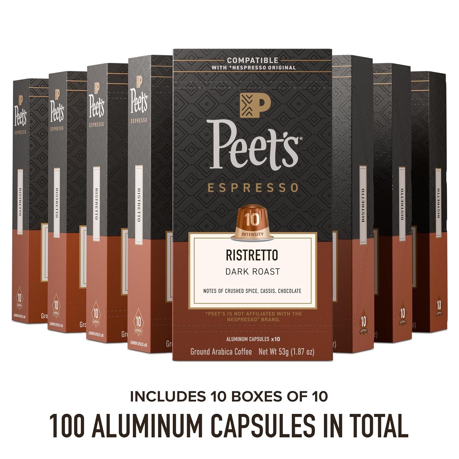 | Item Type Name | Peet's Coffee, Ristretto Espresso - Dark Roast Coffee - 100 Count Single Cup Espresso Capsules, Intensity 10, Compatible with Nespresso Original Machines (10 Boxes of 10 Espresso Capsules) |