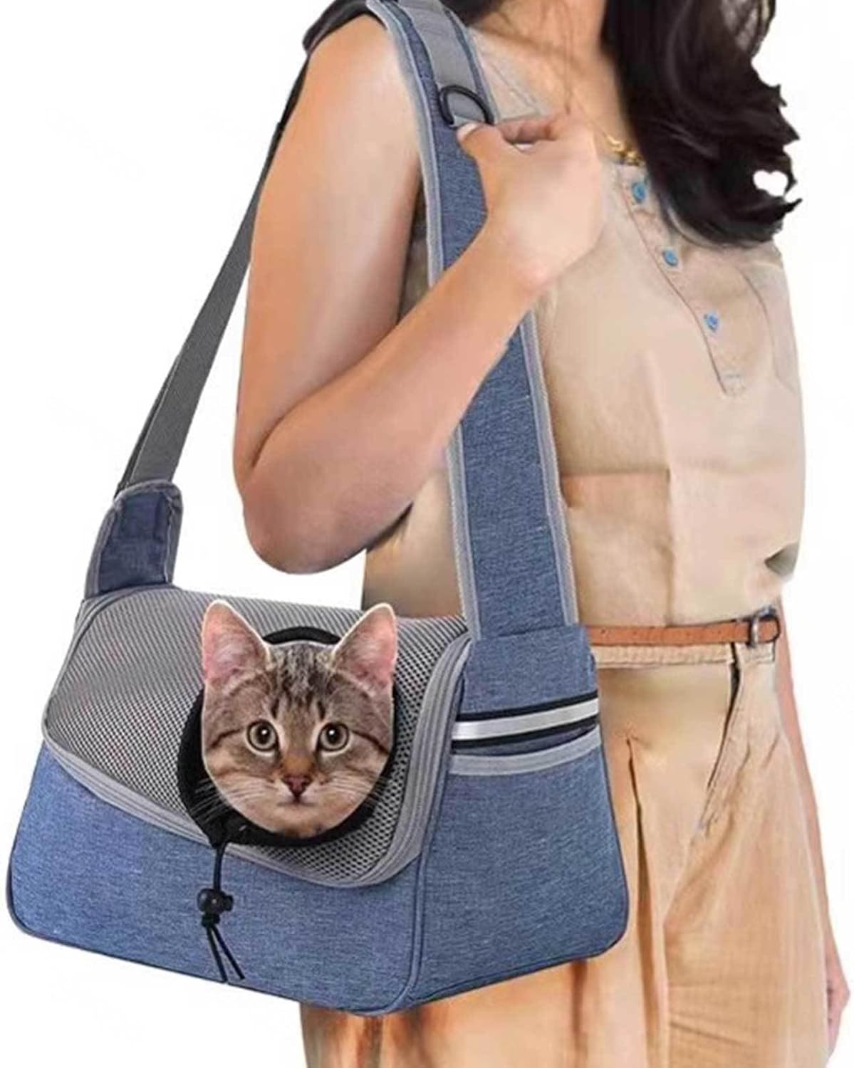 Why Choose This Cat Carrier Bag?❤ Dog cat hand free sling carrier help you take your four-legged friend into the mall, grocery stores, hospitals, parks and go for daily walk or a long distance walk.❤ With a safety buckle in the bag and a breathable mesh skylight on the top of bag .giving your furry baby a panoramic view while preventing it from accidentally falling off.❤ The cat travel carrier is designed for small, medium cats,puppies,rabbit etc.❤Puppy Sling Carrier/Pet Dog Sling Carrier/Hand Free Puppy Cat Carry Bag/Pet Travel Safe Sling Bag Carrier❤Material: Oxford fabric❤Color: Black,Blue,Brown,Grey,Pink❤Size Details: 36 x 19 x 21cm/14.2 x 7.5 x 8.3in, Recommended for pets up to 10 lbsPackage Includes:1* Pet Carrier Backpack