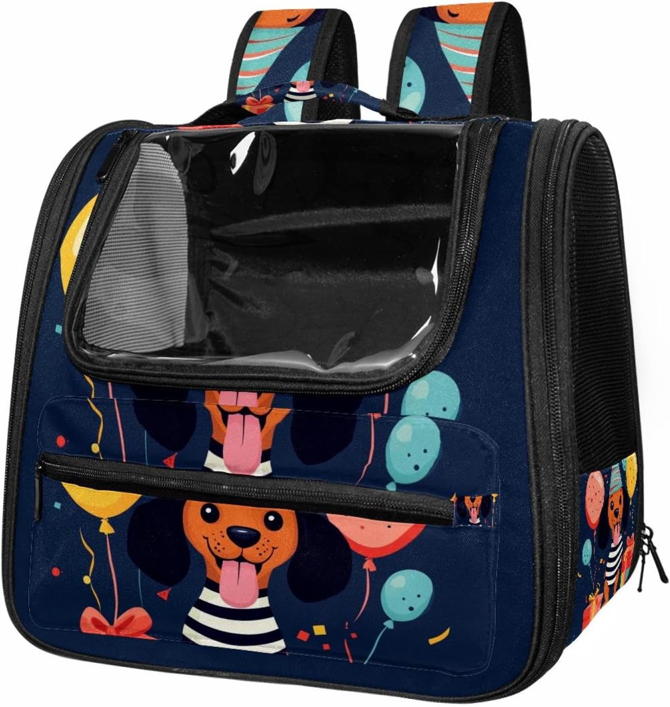 Well made: Cat Backpack Carrier is made from 900D oxford fabric, pp webbing, velvet, nylon, which is very sturdy, environmentally friendly and breathable. Not easily scratched by pet’s claws, pet backpack carrier is SAFETY & ANTI-SCRATCH. The back padding will give you a comfortable and breathable experience. Ventilated Backpack: With a breathable window in the front, this pet backpack allows cats to enjoy the sun without feeling stuffy. There are two side pockets and one big front pocket, and you can take foods or toy for your kitten pet. It is big enough for cat to turn around, and there are side pockets and hook holes, you will enjoy the greatest convenience when taking your cat out. Perfect size: Cat carrier is 15.75x9.84x13.78in/40x25x35cm. Fits most small/medium sized cat, dog, and pet. Quality fleece bed provide a comfortable place for your pet. Lightweight and easy to carry to all places. Built-in harnesses keep your naughty friends from escaping. Removable cosy mat for easier cleaning and let your pet enjoy it inside. Easy to carry: The adjustable shoulder strap of pet carrier bag help you hands-free carrying and makes it the most safe and convenient pet carrier bag for your travel. Seat belt design provide pets with safety protection throughout the trip. Pad protection keep your pets comfortable during travel. Unique Design: Innovative inside graphic design gives you a stereoscopic 3D visual experience. You also send us the photos you interest to make your unique dog or cat carrier. Pet bag is also a amazing gift for pet lover.
