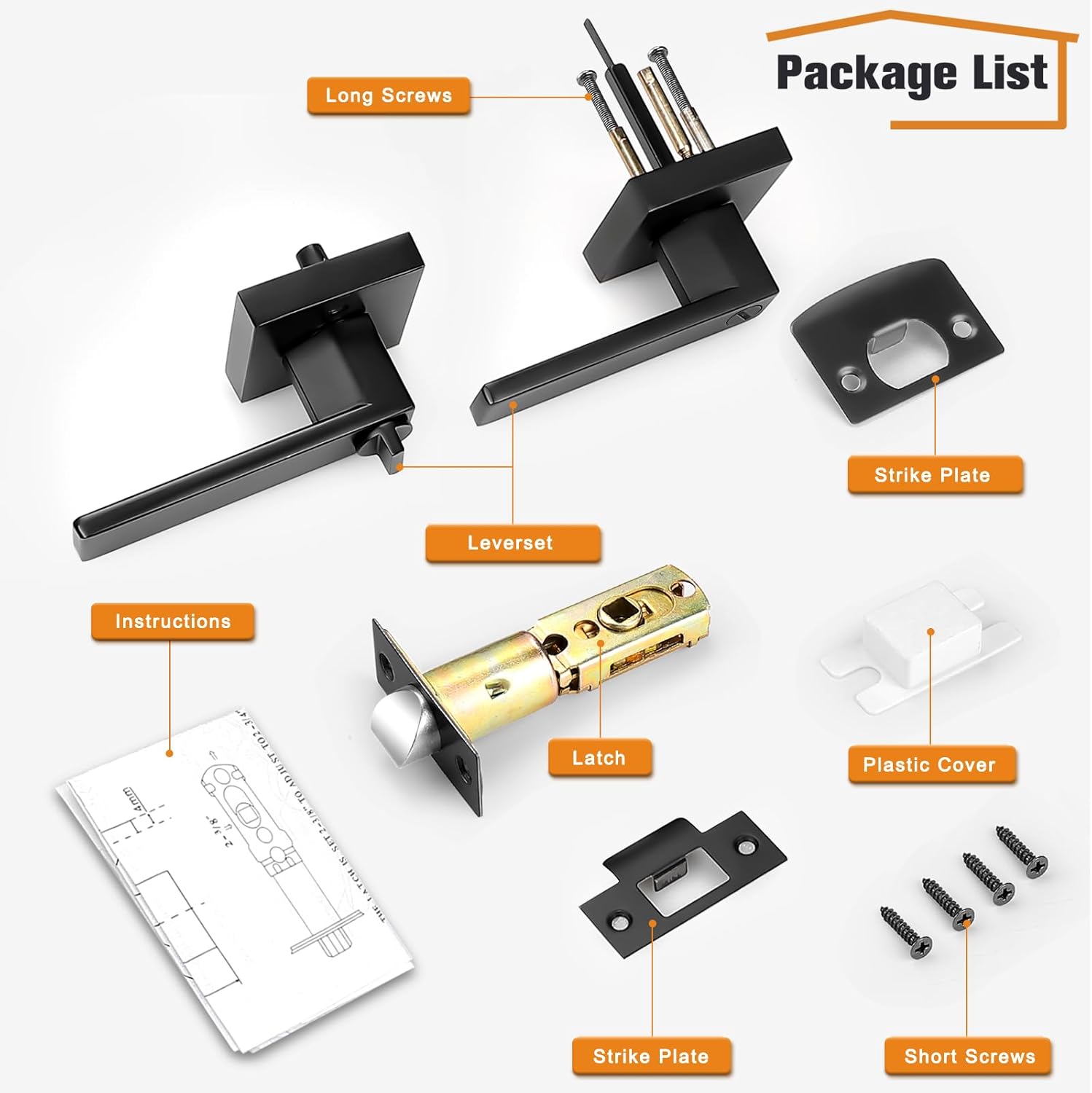 | Included Components | Installation Hardware, Screws, Latch, Lever Handles |