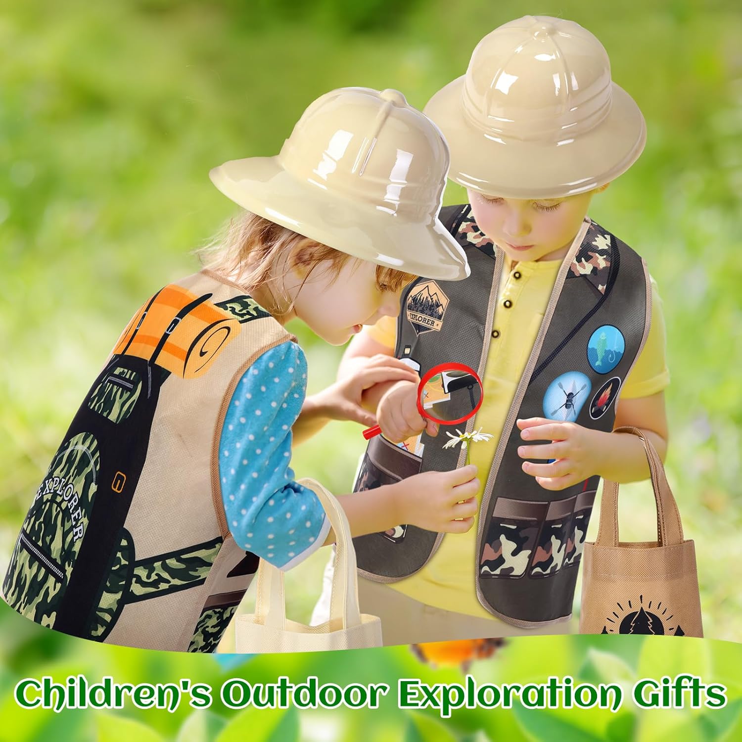 | Included Components | 12 plastic explorer hats, safari vests, tote bags, handheld magnifying glasses, binoculars |