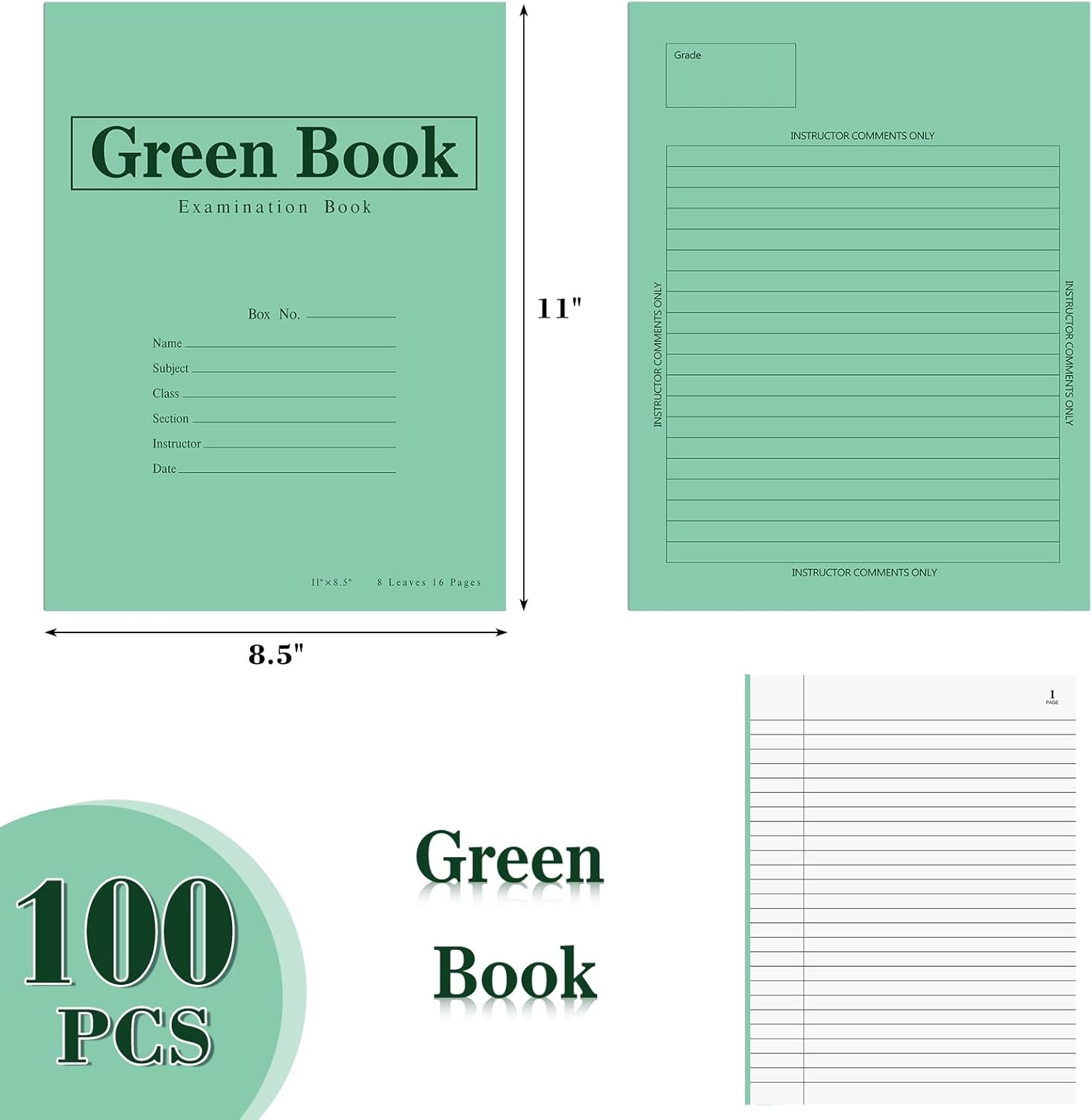 Features: The green book is made of quality paper, and each diary contains 8 sheets 16 pages of lined paper for use, our journal paper is thicker than regular book writing paper, so you can use most pens, pencils with confidence without ghosting and leakage. Whether you are buying for your own use or taking exams, this green book will be enough to meet most of your needs. Recommended for use in the classroom and at home. Specifications: Material: paperColor: as picture shownSize: about 8.5 x 11 inches/ 21.6 x 27.9 cmPackage includes: 100 x Green notepadNotes: Manual measurement, please allow slight errors on size. The color may exist a slight difference due to different screen displays.