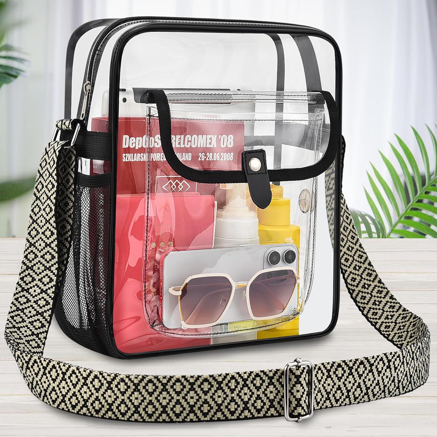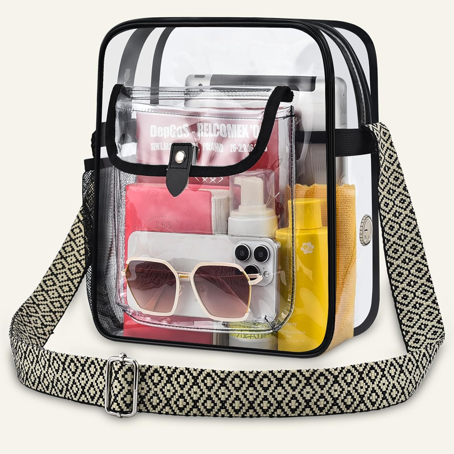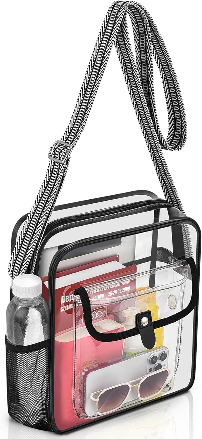 | Material Features | 0.4mm thick transparent and tear-resistant PVC material., A fashionable flap front pocket makes it quick-access., Elastic side mesh pocket., Premium zipper., Reinforced stitching process, durable and long-lasting. |