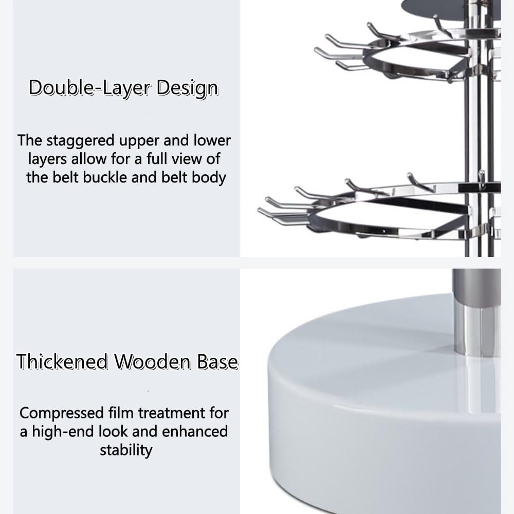Materials: Stainless Steel + WoodIs it necessary to install: YesPacking:1*Belt rackNote:1. We are manually measuring, there may be an error of 1-3cm, please prevail in kind.2. Due to the different monitor and light effect, the actual color of the item may be slightly different from the pictures. Thank you for understandingThe Stainless Steel Belt Retail Rack with Hooks is the ideal solution for organizing and showcasing a variety of accessories in style. Featuring a 360° rotating design, this floor-standing rotating ties display stand offers full accessibility to all your products, allowing customers to browse effortlessly from all angles. Whether you're displaying belts, ties, scarves, or other accessories, this rotating design enhances product visibility and creates a smoother shopping experience.Ideal for both commercial and home use, this rack is suitable for retail environments such as craft fairs, exhibitions, boutiques, and jewelry stores, as well as home spaces like bedrooms or closets. Its stylish design ensures it will be a standout piece wherever it’s used, making it as visually striking as it is practical. Whether you’re displaying your merchandise in a professional setting or organizing your personal accessories at home, this rack is the suitable choice.
