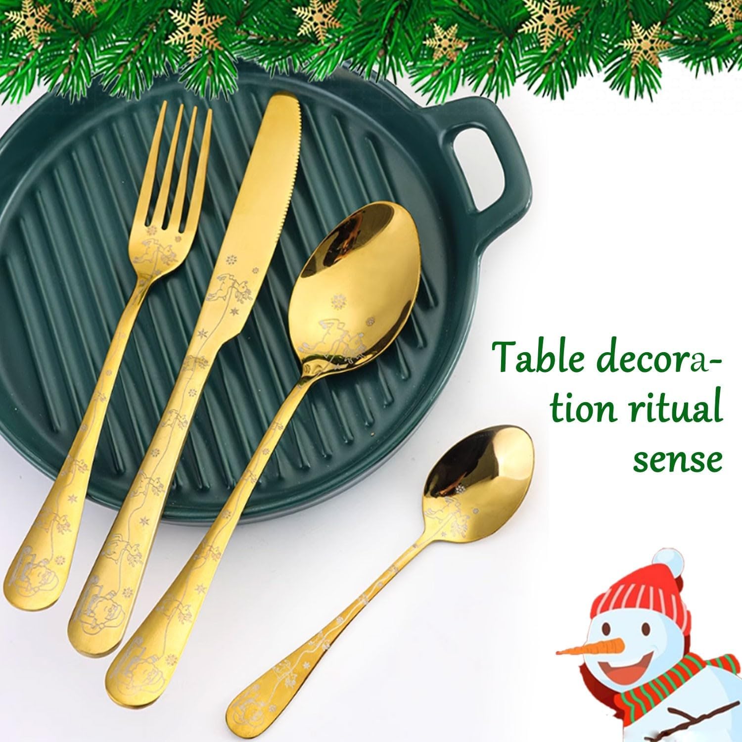 Product DescriptionName: Christmas themed tablewareSpoon head/fork head material: stainless steelProcess: Mirror electroplating + new printingNote: The products are all taken in kind. Due to different objective reasons such as light, angle, display, etc., there may be color differences, please understand.