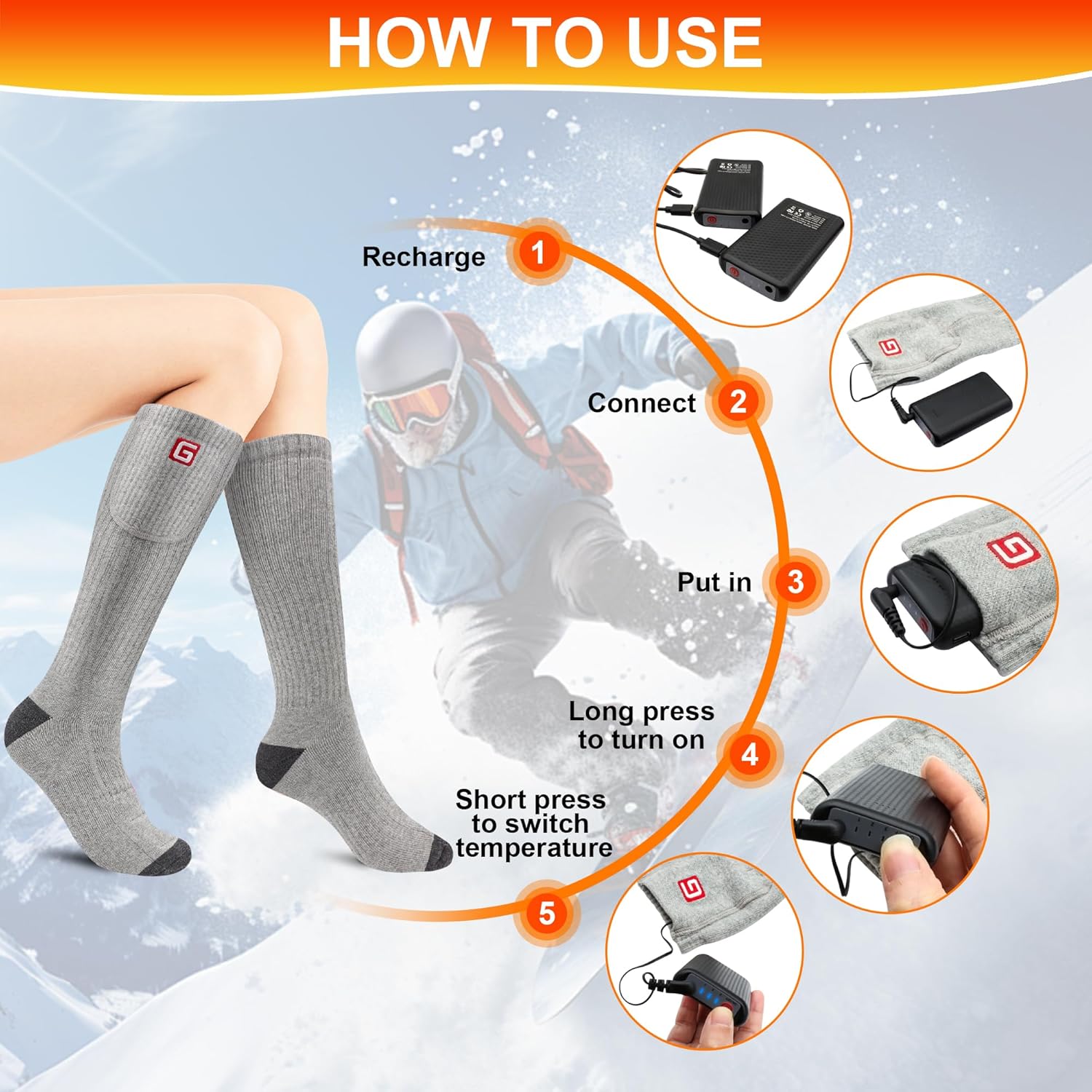 | Included Components | 1pair * Heated Socks,2*4000mAh Li-Polymer Battery,1*USB Charging Cable,1*User Manual,1*Packing Box |