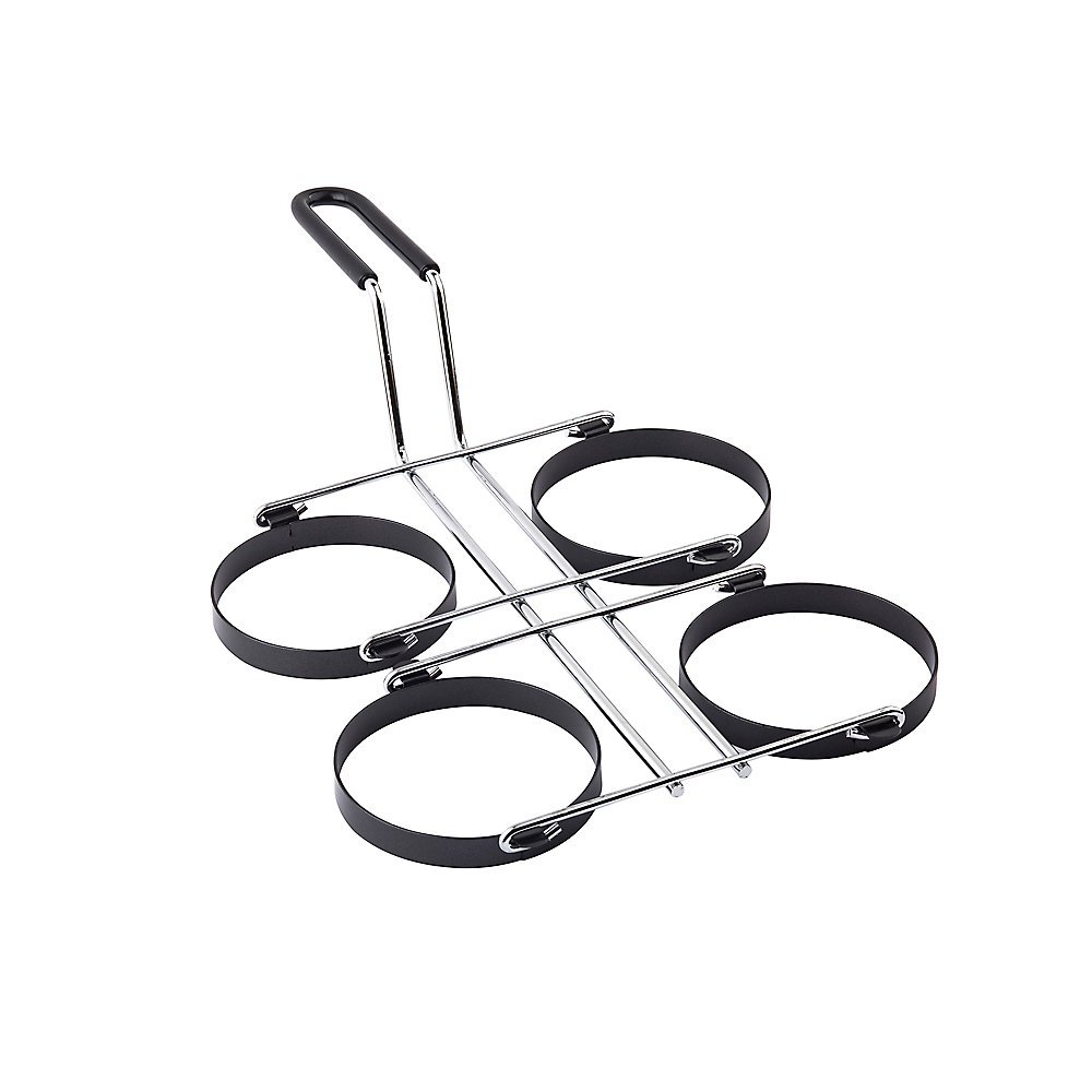 Egg Ring, 9-1/2" x 15-1/2" x 3-3/4", (4) 4" dia. x 5/8" non-stick egg rings, black cool-to-touch vinyl handle, dishwasher safe, nickel plated frame (1 each minimum order)