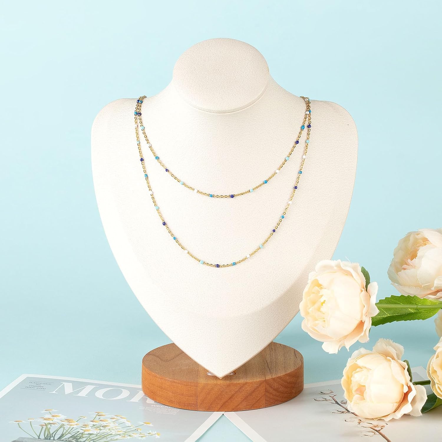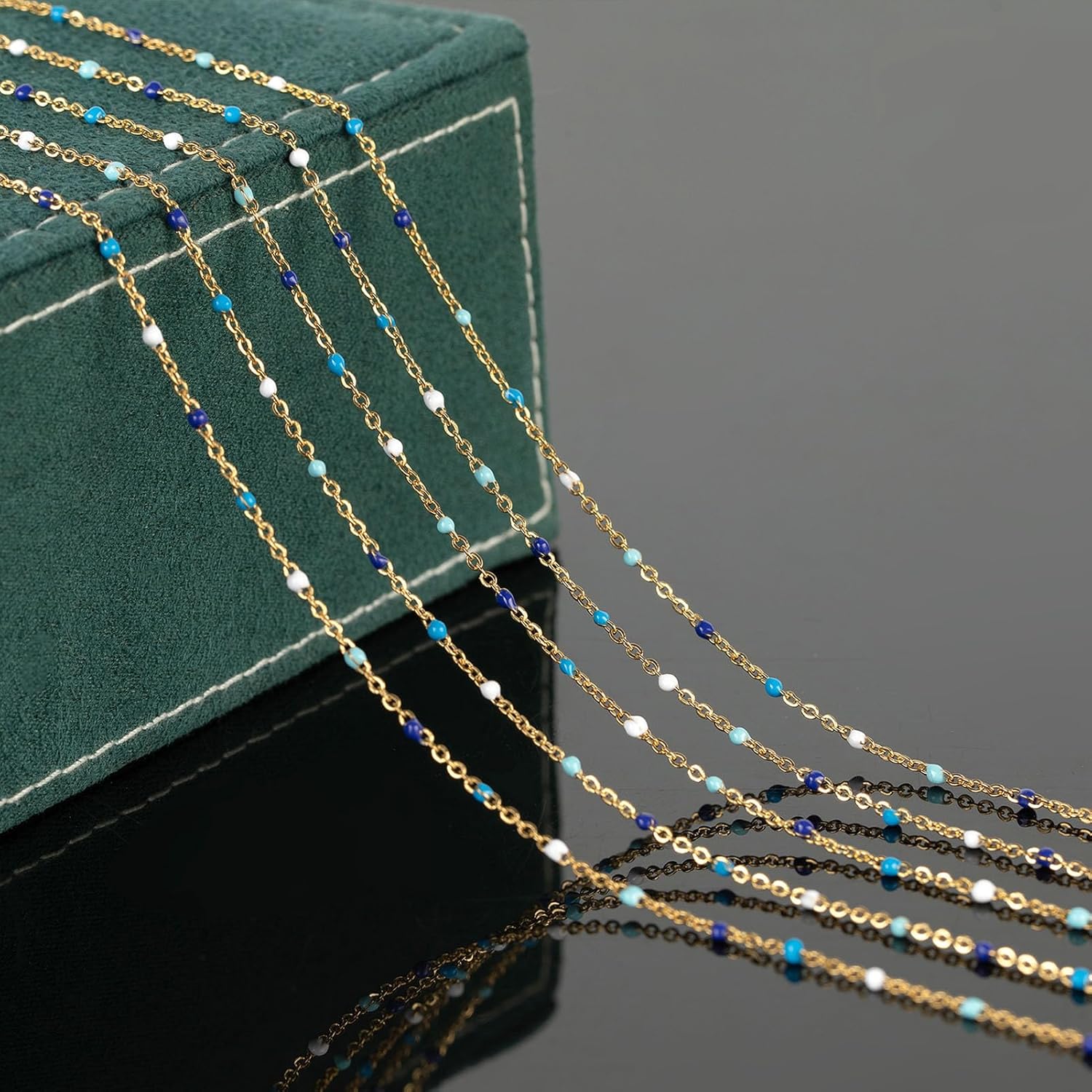 Specification:Brand: UMAOKANGMaterial: Stainless Steel Cross Chain, No Fade, Shiny Smooth Surface, Sturdy Not Easy to BreakChain Link Size: about 1.5mm long, 1.5mm wide, 0.4mm thickLobster Clasps Size: 10mm length, 10pcsOpen Jump Rings Size: about 4mm inner diameter, 30pcsChain Total Length: 10 Meters / 33 FeetColor: Gold plated stainless steel with blue mixed color enamel beadsUsage: Jewelry making DIY, craft projects, decoration accessories, gift ideaFeature:1. Not easy to fade, lead-free, nickel-free, and allergic-free! Safe for sensitive skin.2. Easy to Use: It is unfinished jewelry. Cut the desired length with jewelry pliers. DIY your unique necklace.3. Multiple Usages: The stainless steel jewelry chain is great for making bracelets, chokers, necklaces, earring projects, jewelry repair, and crafting. Also can be used as a key chain, pocket chain, purse chain, glasses lanyard, mask lanyard, costume chain, decoration chain, etc. The jewelry chain roll is a great gift idea for women who love jewelry making, mothers, grandmothers, wives, girlfriends, DIY lovers, and yourself on Valentine's Day, Mother's Day, Christmas, birthdays, and other special days.Care Tips:1. Remove the jewelry chain before showering or participating in a sports event for a longer shine.2. Avoid contact with perfume, detergent, chlorine, and salt water, otherwise, it will easily lead to fading of gold ornaments.Customer Service:Your satisfaction is our top priority, please feel free to contact us with any questions, we will reply to you within 24 hours.