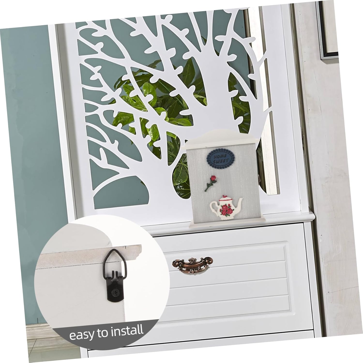 Package Include Characteristics - Color: White key hanger -Material:Wood decorative key cabinet - Size: 26.00X21.00X6.50cm/10.22X8.25X2.55in key organizer -Practical hook feature allows for easy hanging of keys, preventing misplacement and making your daily routine rustic key holder. -Innovative and stylish design makes this key holder a standout decorative item, highlighting your keyholder wall mount. -Multipurpose storage capability, suitable for holding keys, jewelry, and other small items, ensuring everything is neatly organized hallway key hooks. -Wooden material safeguards your keys and jewelry from scratches and damage, while adding a rustic charm to your decor door key holder. -Sophisticated european retro design brings and elegance to your home, making it a decorative piece key cabinet.Goods Informationwall-mounted key holder The sturdy wooden construction ensures that your keys and accessories are safe from damage, while the wall-mounted feature saves space.key case wall mount The farmhouse-inspired design brings a cozy and warm feel to your entryway.key holder with unique shape and intricate details make it a decorative piece that complements any interior.key holder for wall Elevate your home decor with this creatively designed key holder